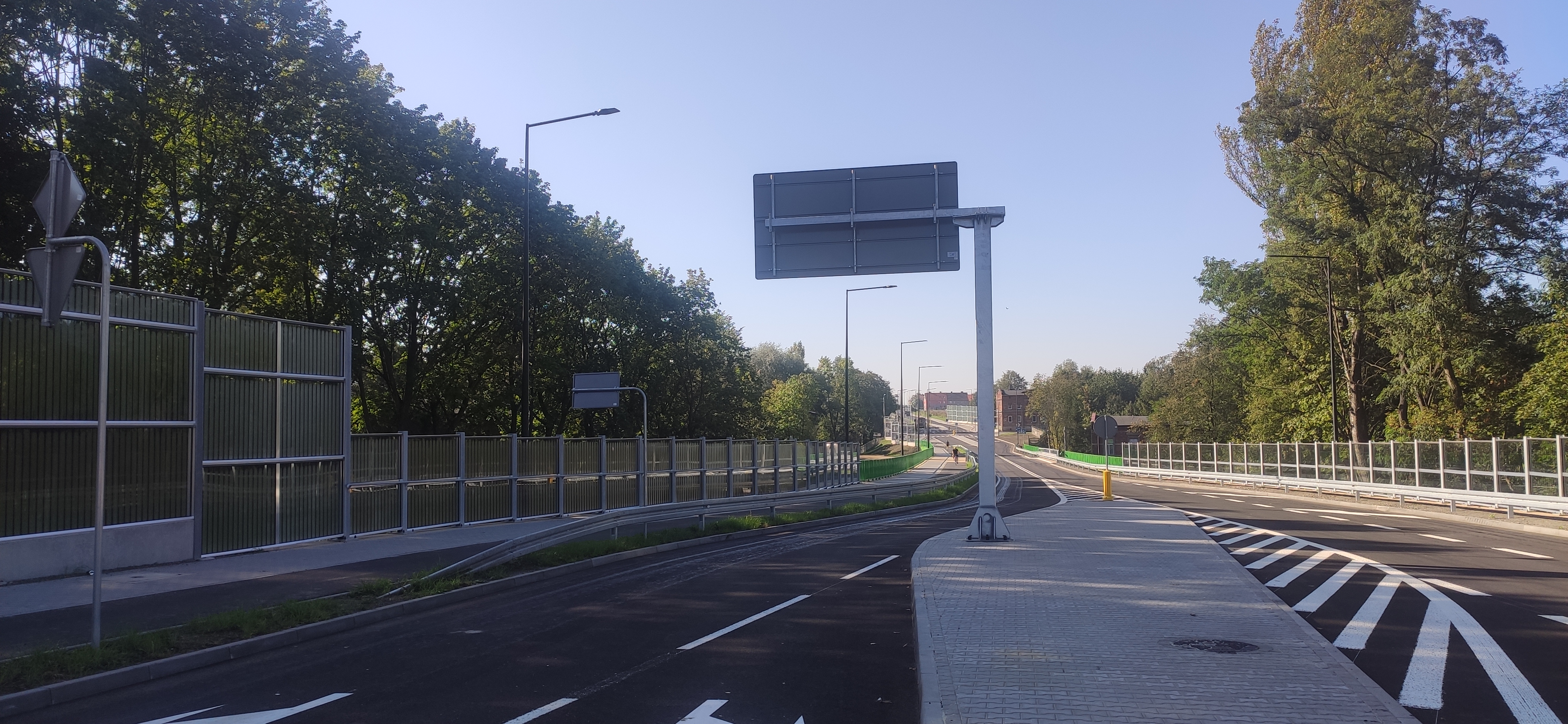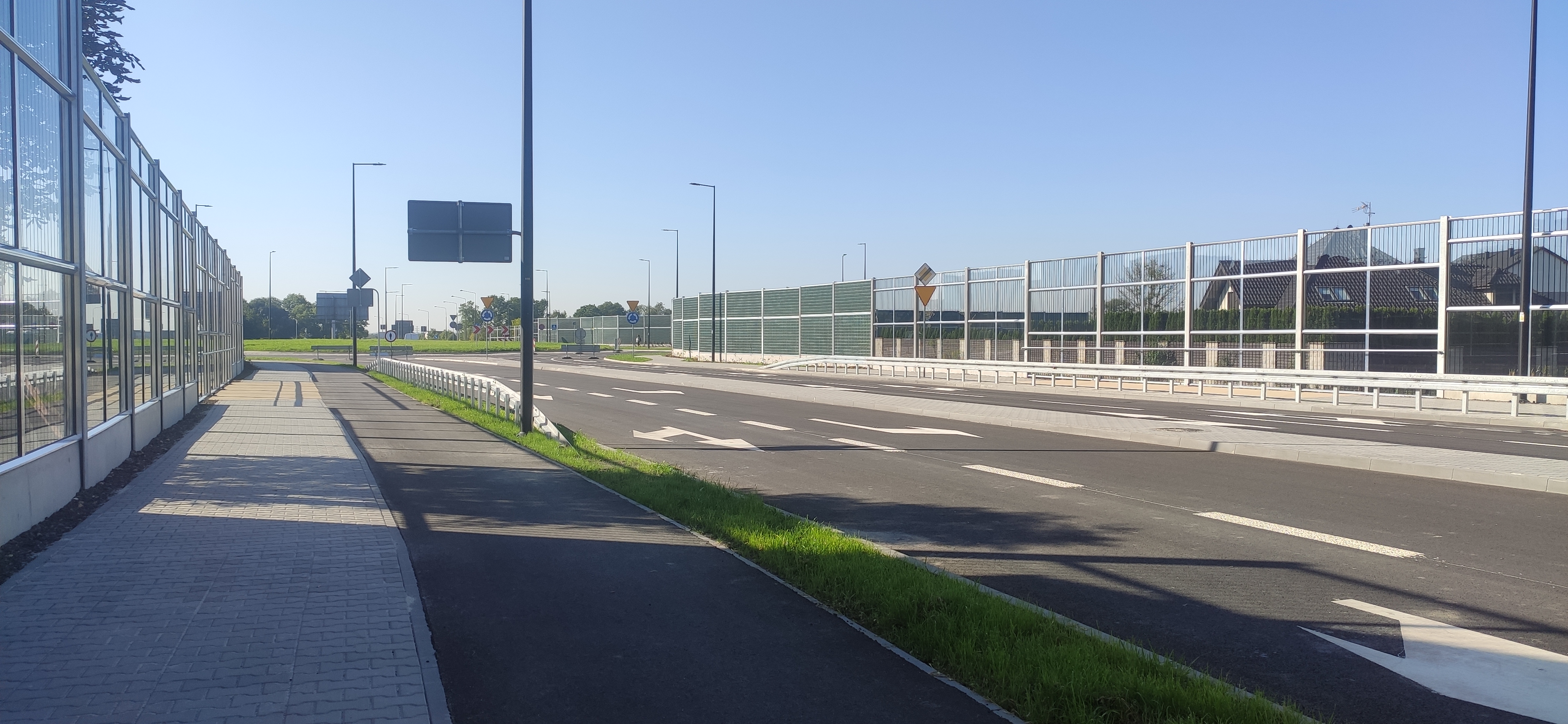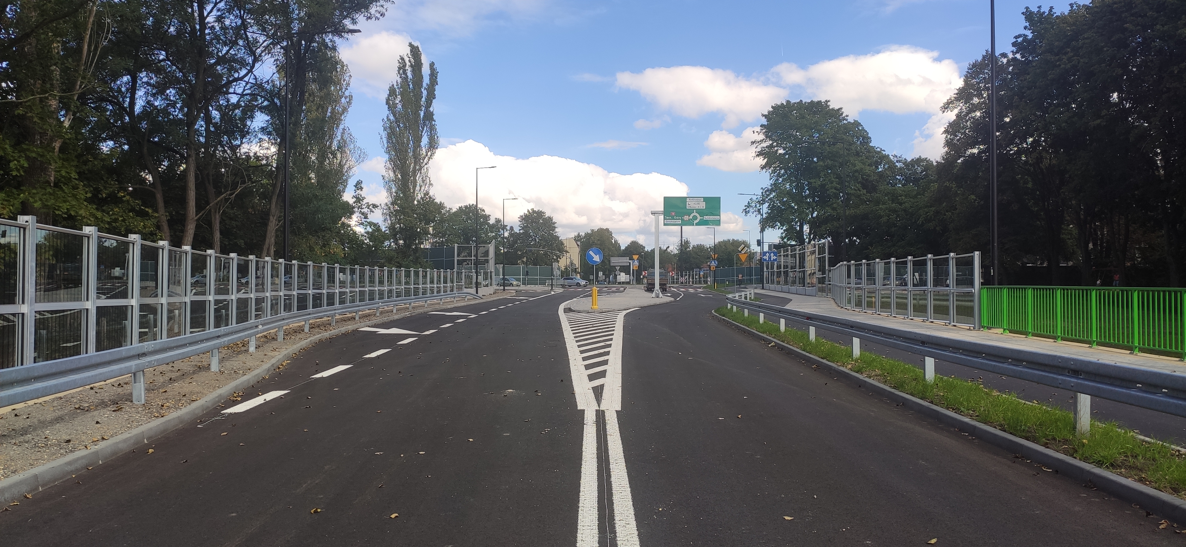 - Zmienna szerokość pobocza w zależności od przebiegu barier, chodników, ekranów akustycznych oraz murów oporowych