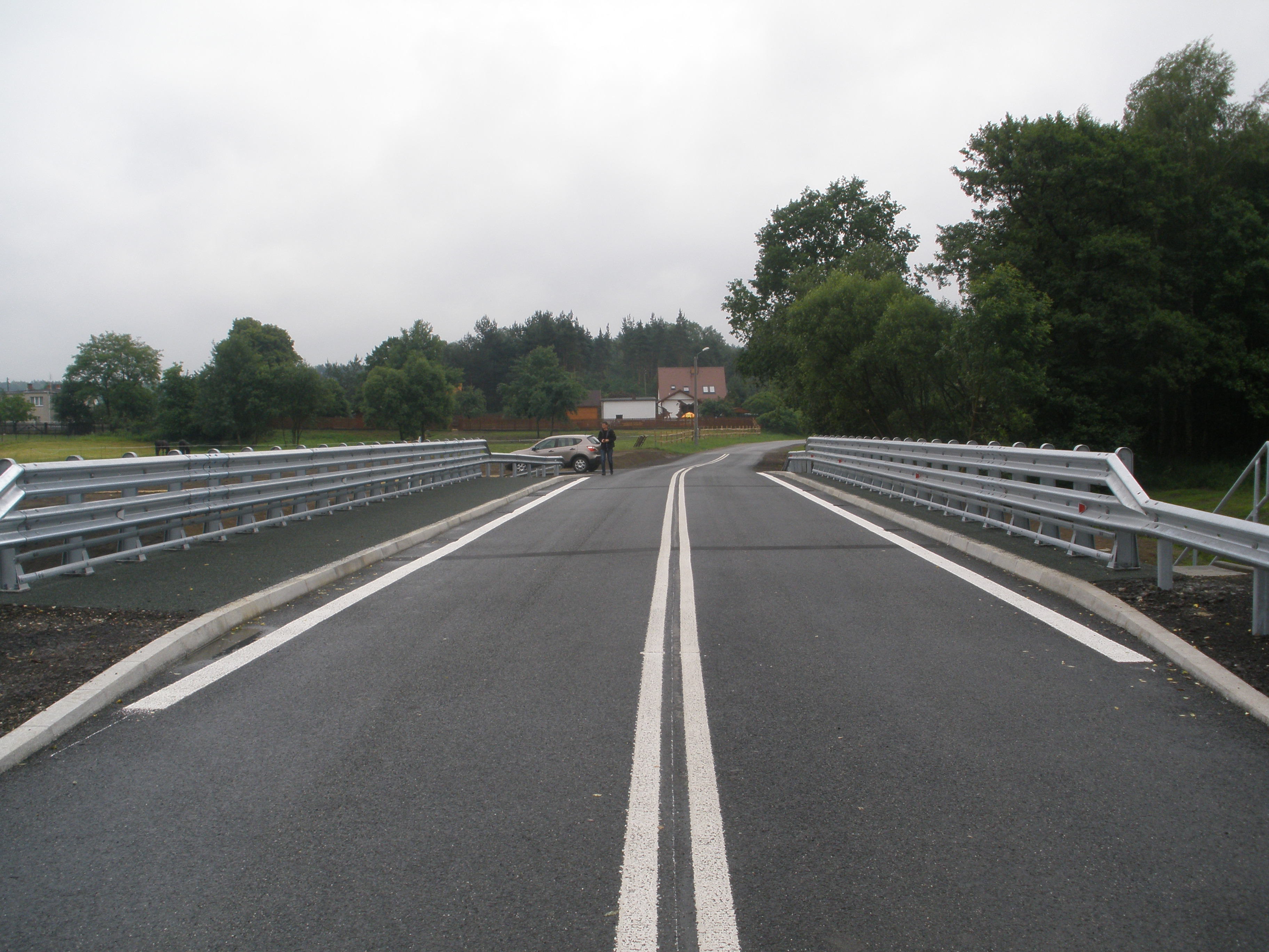 b) na odcinku poszerzenia jezdni przed mostem (dojazd od strony Smolnicy):
