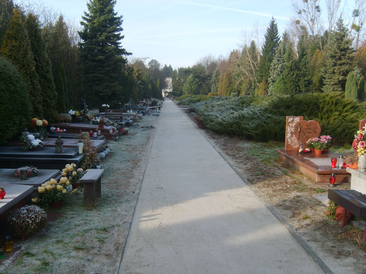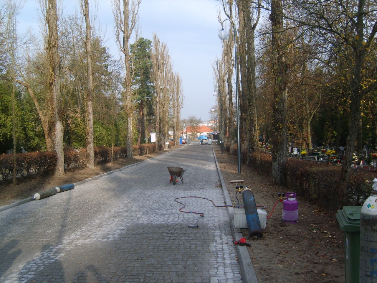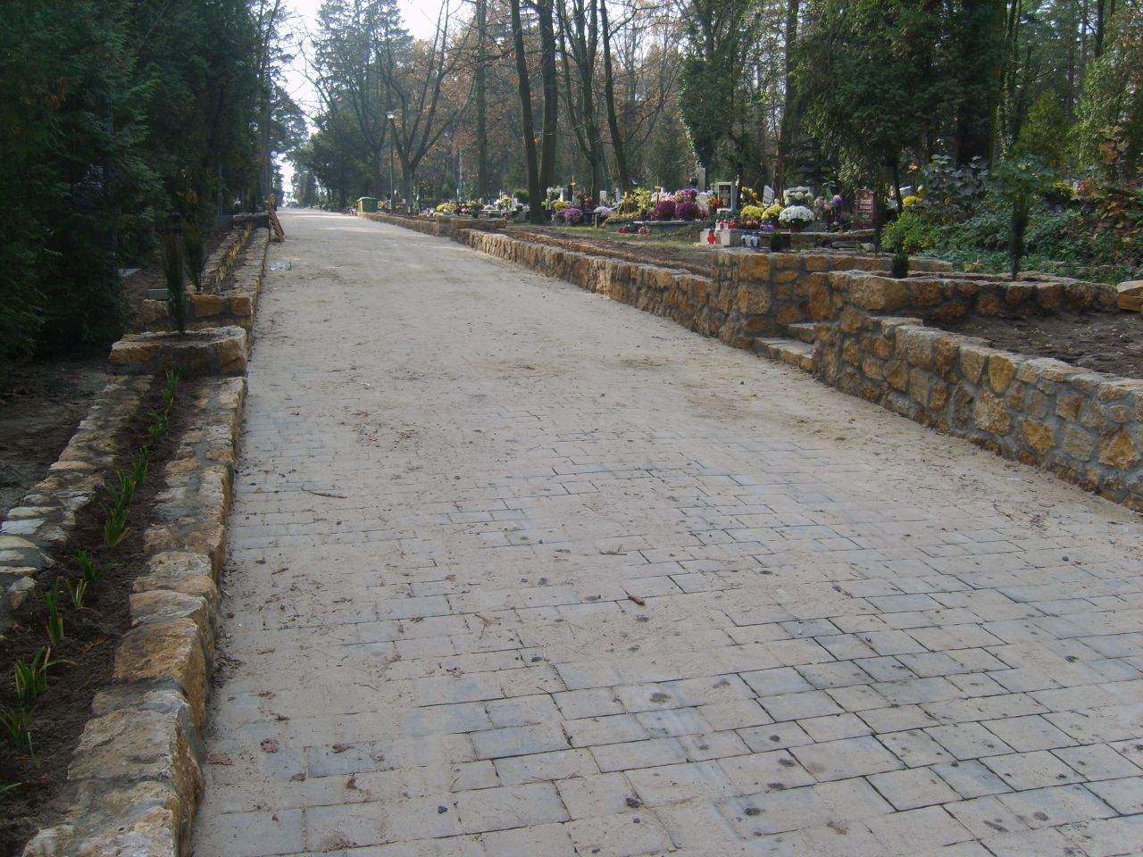 - wykonanie alei głównej od bramy głównej do kaplicy cmentarnej oraz placu wokół kaplicy z promieniowanej kostki granitowej,