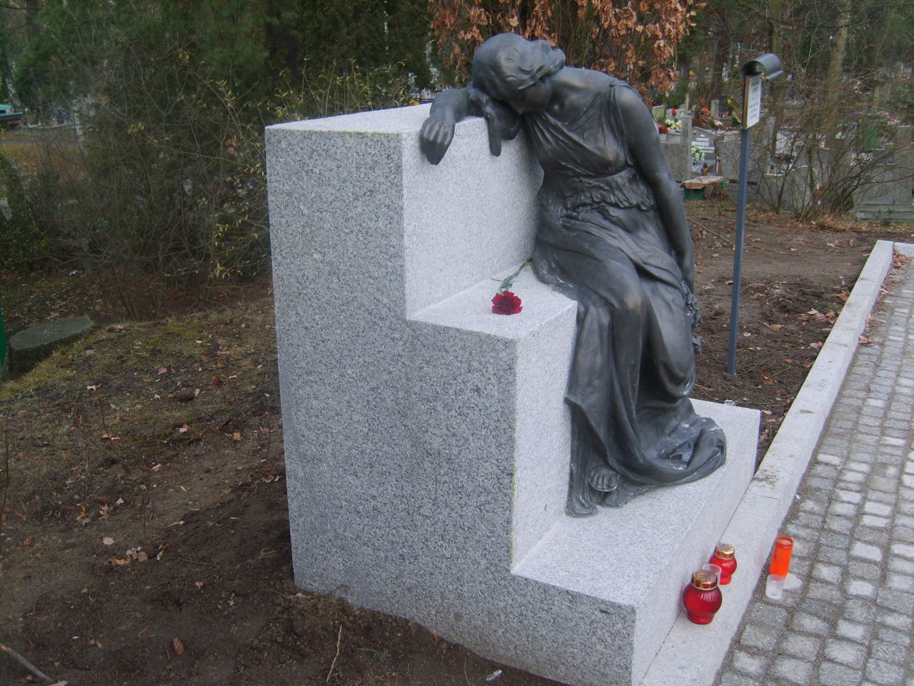- wymiana betonowego postumentu pod rzeźbą „Smutek” na postument z pełnego bloku granitowego,